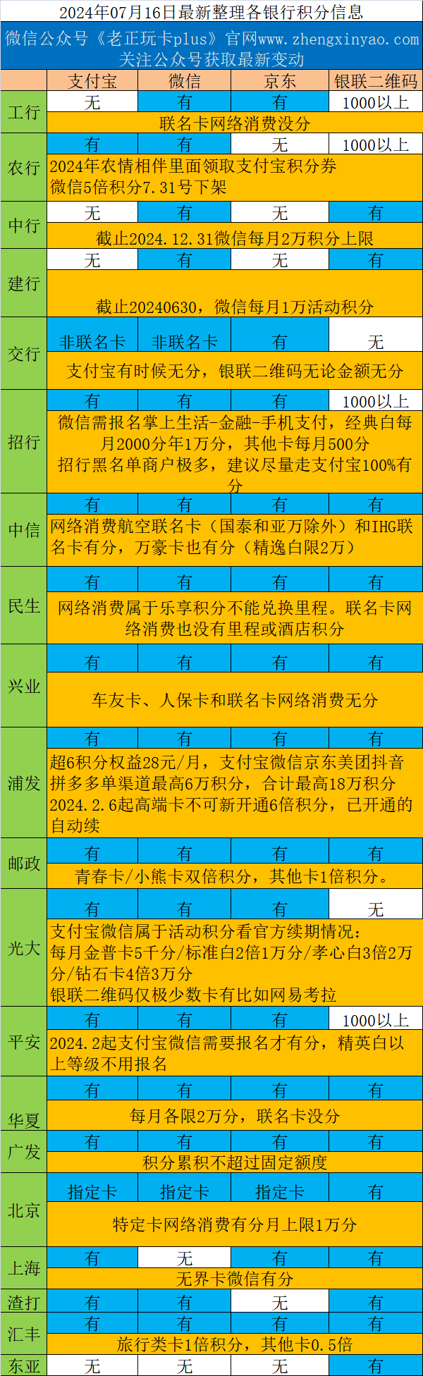 2,中行支付宝没有分了,微信有分但是每个月上限2万