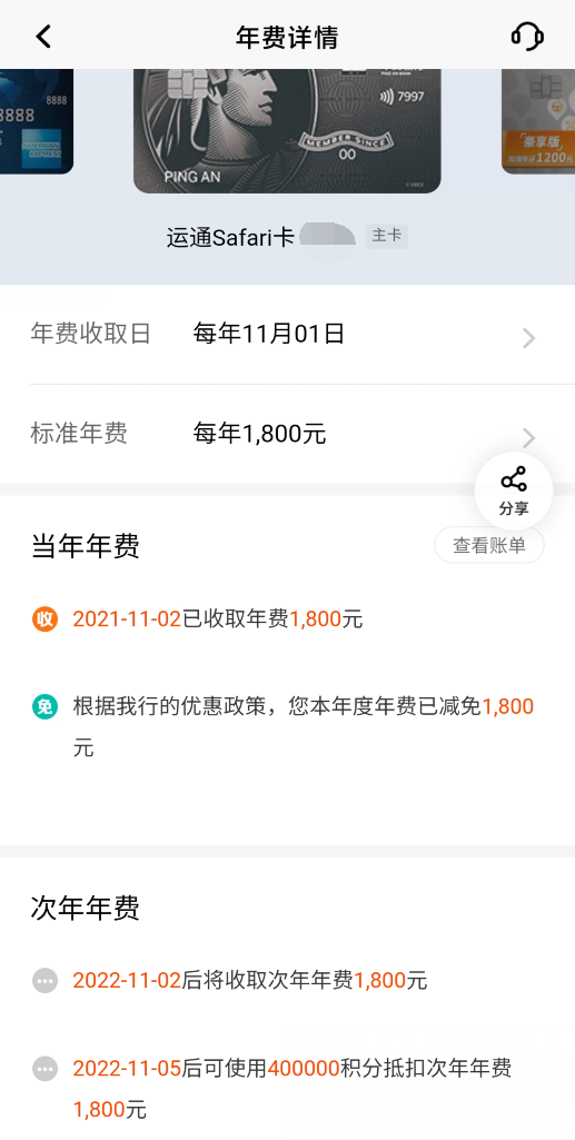 平安Safari的年费本来就是先收后退,所以已经被收了1800元年费的拿到积分后再去APP年费详情点击一下积分抵扣年费,就可以拿回1800元了。