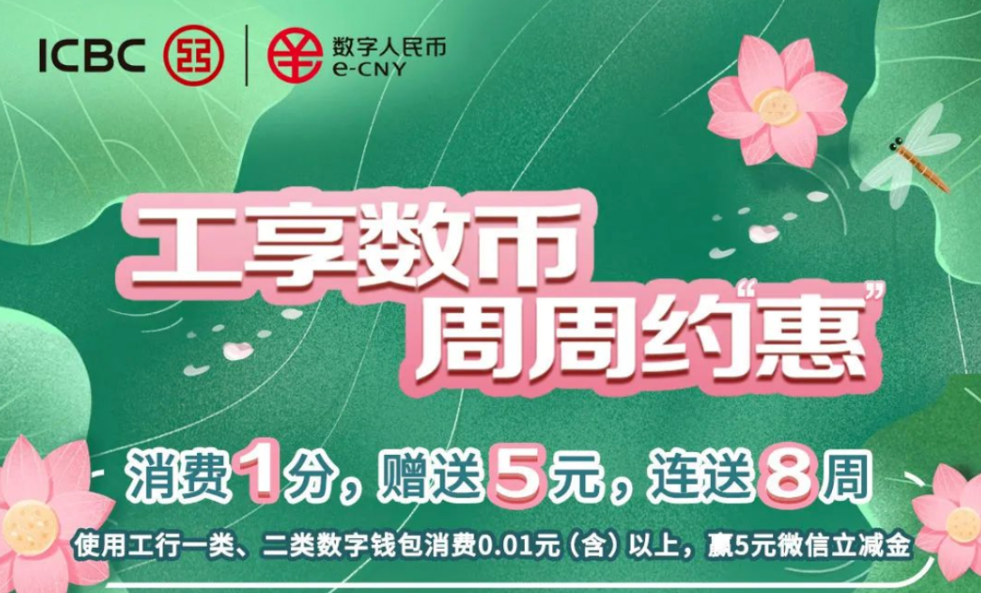 领取方法:完成支付的下一周周四10:00起,登录工行手机银行搜索“工行消费季”,在“工享数币·周周约惠”活动下领取。领取后需使用微信支付选择工行借记卡或工行电子二类账户作为支付方式,支付金额满5.01元即可使用。