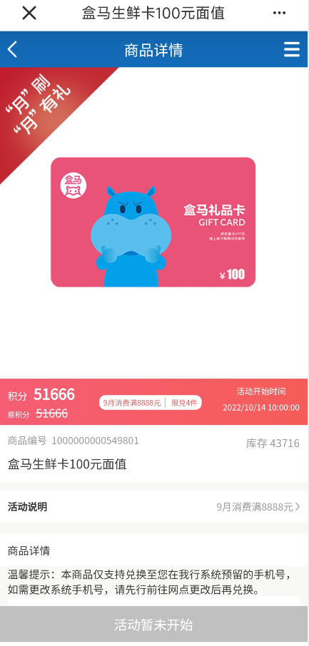 - 满5888元的可以25666分换50元京东、盒马、猫超