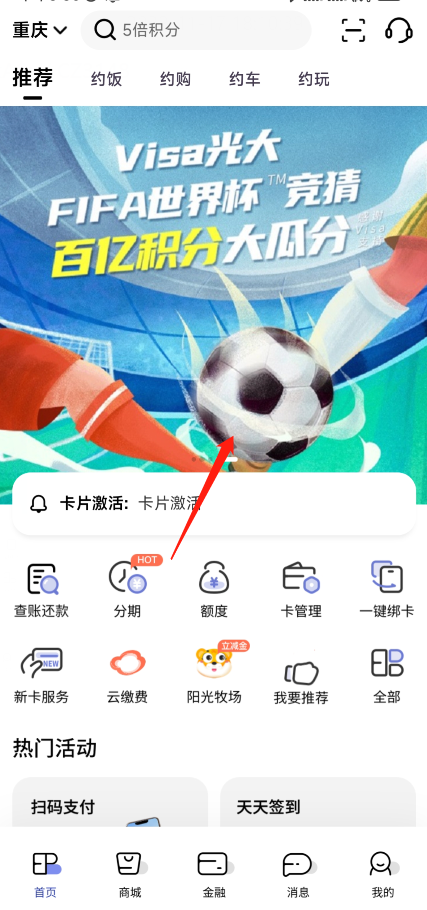 光大APP更新到最新版本,首页横幅广告可进入活动