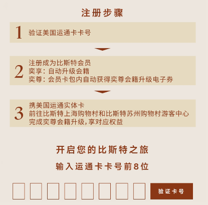 3,去上海/苏州比斯特购物村游客中心现场激活,升级为奕尊会员。截止日期明年6月30日。