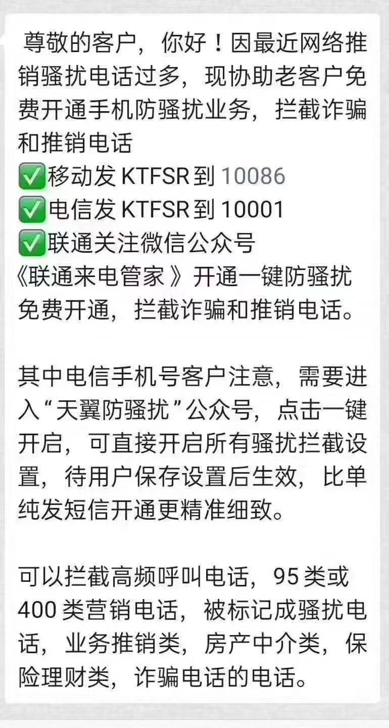 2,昨天群里发了屏蔽骚扰电话的方法,但是只有移动的。很多人就问联通和电信的怎么办,今天都有办法了。